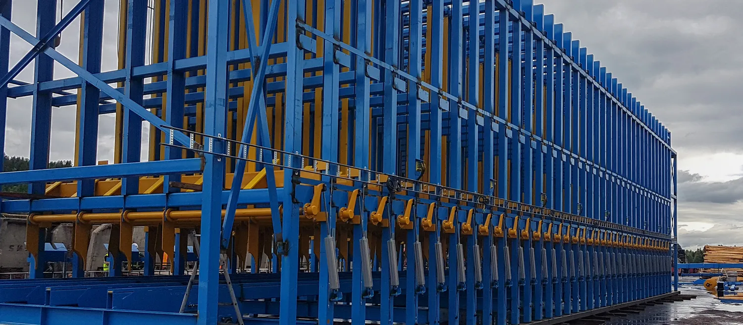 Stabil konstruktion med "Pusher" kedja för kapaciteter över 200 medbr/minut. Vid tömning fälls stödarmar ut på båda sidor om facket för att hålla ihop paketet när det tömns ut på underliggande transportör.